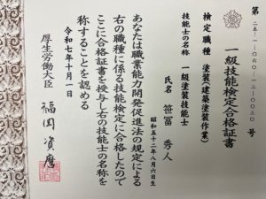 一級塗装技能士は、塗装に関する高度な知識と技術を証明する国家資格です。